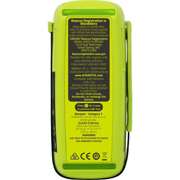 - 3 levels of integrated signal technology—GPS positioning, a powerful 406 MHz signal, and 121.5 MHz homing capability