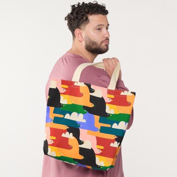 I chose this bag for the colors and design. Ii is well sewn, has comfortable handles and enough of a color print coating to stay reasonably dry. It holds a lot of anything, groceries, odds and ends or just a random multi purpose tote. I was really pleased to see that the design supports Pride month too.