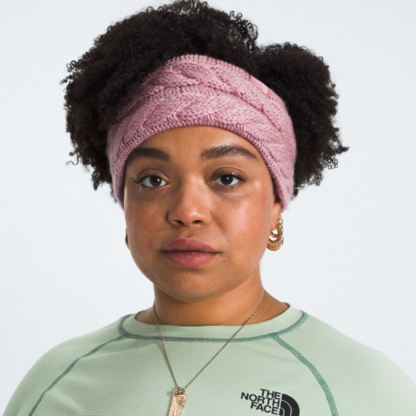 Classic cable-knit construction combines with a warm and cozy fleece lining to create this headband from The North Face. The body is made with recycled polyester yarn.