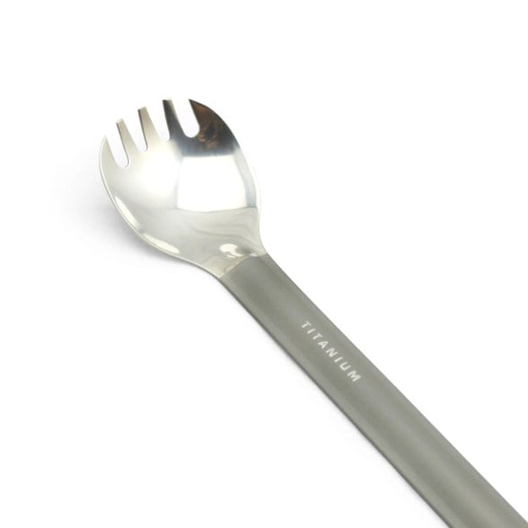 - The spork is made of 1 piece of titanium with 2 unique surface treatments on the head and handle