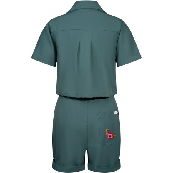 Whatever sweat-inducing activity gets you going—hiking, biking, dancing—the women's SHREDLY Droptail Trail romper is made for it. It has a quick-dry, 4-way stretch technical fabric and adjustable fit.