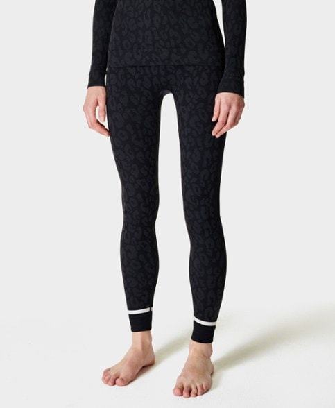 High-performance base layer leggings for on or off the slopes, the Sweaty Betty Jacquard Base Layer leggings have a subtle jacquard allover leopard print because ... why not?