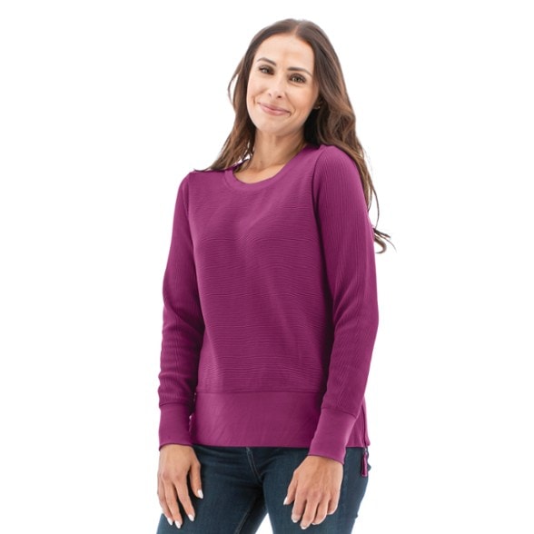 A top to take you through your winter days, the Aventura Hazelton crew neck offers a casual fit in a midweight textured knit, and gives peace of mind that you are reducing your ecological footprint.