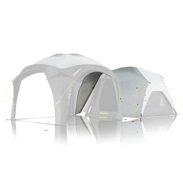 Connect your Zempire Aerospeed 4 Air Tent to a Speedbase 2 Air Shelter. This Link zips onto a side of the shelter to offer covered living space and a waterproof connection between tent and shelter.