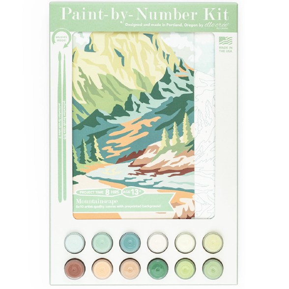 Escape to the mountains even when you're stuck indoors. With the Elle Cree Mountainscape Paint-by-Number Kit, you can watch the vibrant landscape unfold with the flourish of your paintbrush.