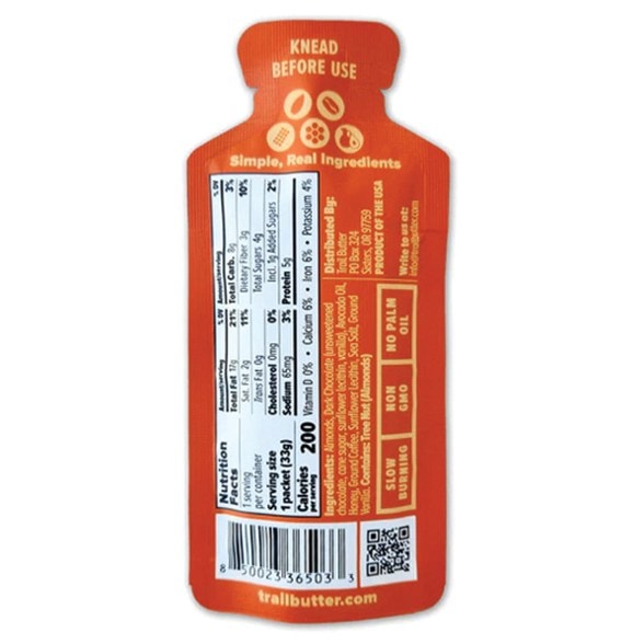This bold, lightly caffeinated Almond Butter Blend from Trail Butter offers rich, decadent flavors of dark chocolate and coffee. Enjoy it straight from the pouch, or squeeze it over other snacks.