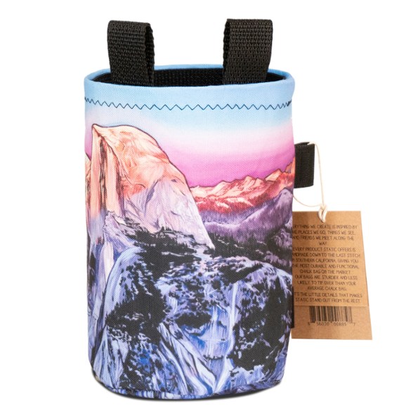 This is my 4th STATIC chalk bag. Iv’e bought more than one because they keep coming out with new collections. The colors on this bag are stunning! Rachel Pohl is a really talented artist. The chalk bag itself is really durable and should last a long time. The hang tag says STATIC also gives 10% of each sale back to the Yosemite climbing association.