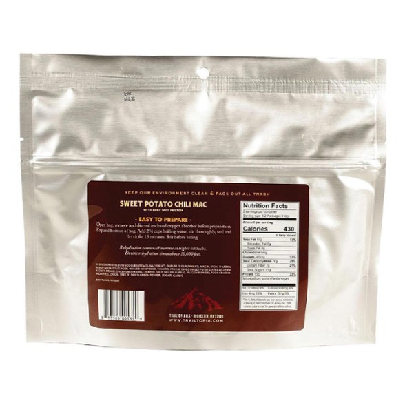As tasty as classic chili mac with a vegan-friendly twist, the Trailtopia Sweet Potato Chili Mac is made with hemp seed protein for a satisfying meal you can enjoy on the trail or at camp.