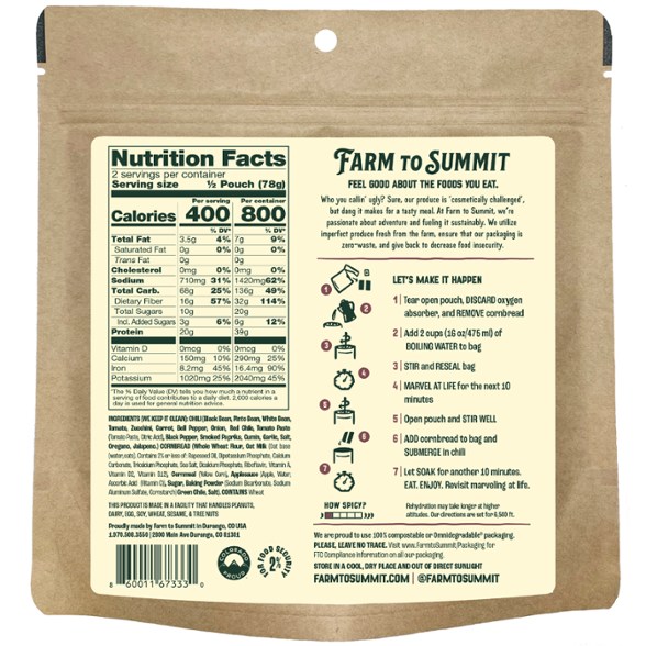 Had this on the first night of a 3 day/2 night, ~46 mile fastpacking trip. The chili tastes fresher than other backpacking fare, and the cornbread made for a fun flavor/texture difference. Already bought more!