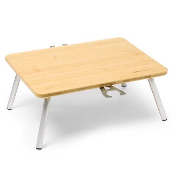Made of bamboo and featuring 2 storable wine glass holders, the GSI Outdoors Rakau picnic table creates a stable surface for prepping and serving a delicious meal.