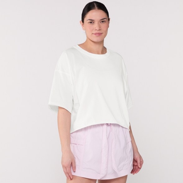 An oversize, boxy fit and cropped silhouette make the women's FP Movement Inspire T-shirt an easygoing essential. Raw-edge seams give it a lived-in look, completing the casual vibe.