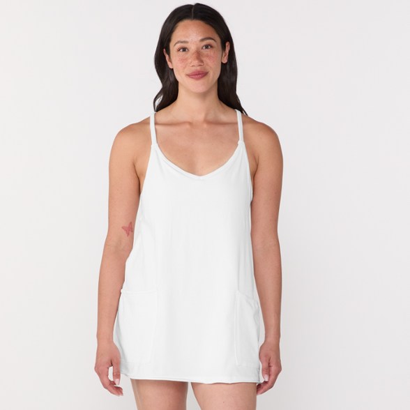 Designed to be worn on and off the court, the women's FP Movement Hot Shot mini dress feels soft and light. This racerback style has built-in shorts and oversize patch pockets.