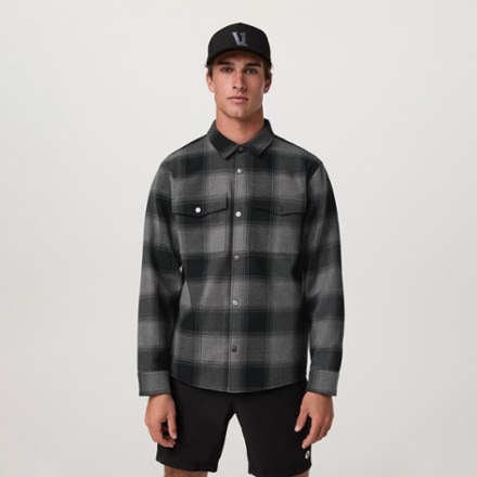 With an all-cotton brushed flannel, this easy-wearing men's Vuori shirt jacket is perfect for layering. The fleece lining adds warmth. And the chest pockets give you a spot to throw a few small items.