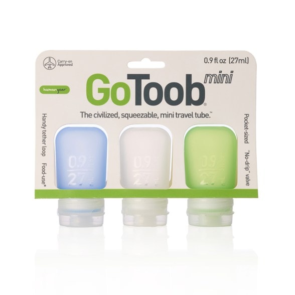 Great for quick overnights, weekend trips and multiday treks where every ounce counts, this 3-pack of humangear GoToob Mini squeeze bottles makes it simpler to travel with your must-have potions.
