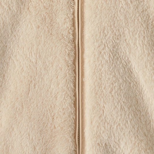 - Body fabric is made from 100% recycled polyester high-pile, double-faced fleece