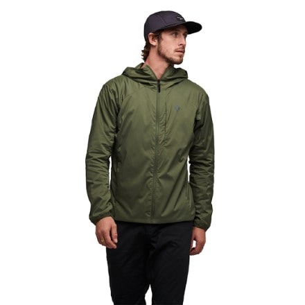 An ultralight soft shell, the men's Black Diamond Alpine Start Hoody is designed to shield you from ridgeline gusts and light weather, so you can keep climbing even in windy and cold conditions.