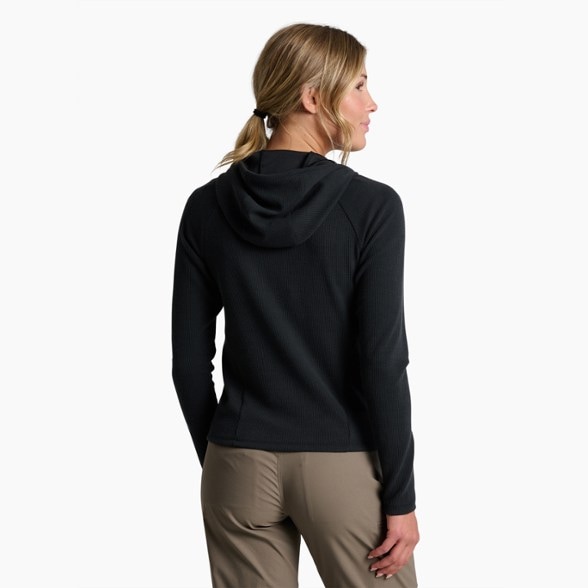 Pull on this KUHL hoodie as a cozy layer or wear it as a comfortable standalone. It features a crinkle rib texture and close-to-body fit. Plus, it dries quickly and resists odors.
