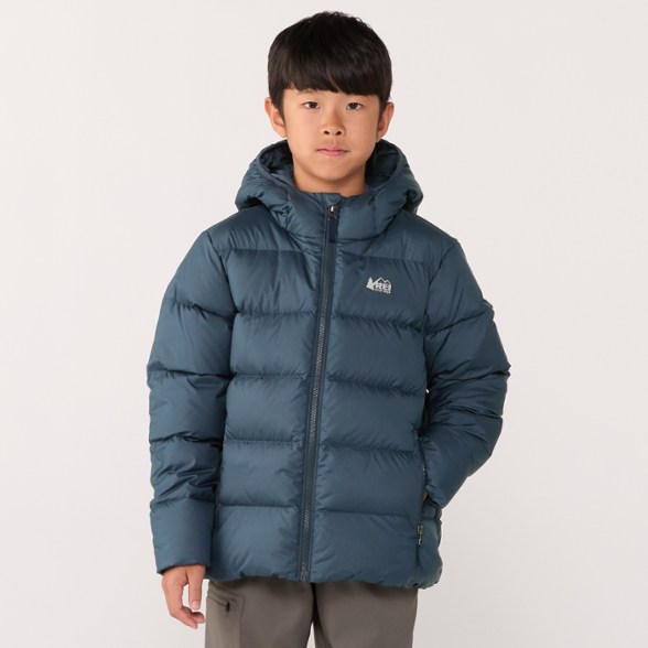 Say hello to the warmest down jacket we make for kids. The REI Co-op Snowballer Down Jacket has lofty 650-fill-power down and windproof, water-resistant shell fabric that's 100% recycled.