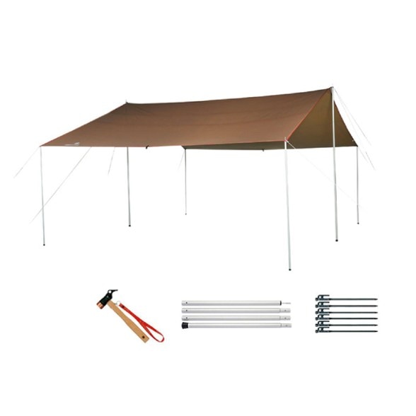 With everything you need for setup, the Snow Peak Recta tarp set is spacious enough for up to 8 people to gather out of the sun, wind or rain.