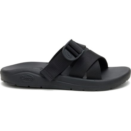 I like these slides for the most part. The first pair I received had a green bottom and some other green in the strapping which I really liked but size 7 which all of my Chacos have been were too small. I exchanged them for a size 8 which fit fine but they are all black which is okay but not quite as I would like. They are comfortable though I think if you had wide feet the straps might be to skimpy. I have narrow feet and they are pretty much at the longest possible. They are comfy and squishy...great for around the house and yard.