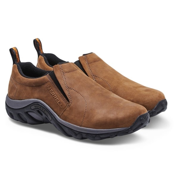 The ultimate low-maintenance slip-ons for after you work out, the men's Merrell Jungle Moc Nubuck Shoes feature nubuck leather uppers with Merrell Air Cushion underfoot for extra support.