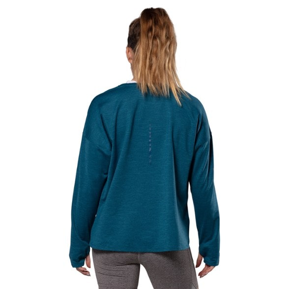 A versatile and comfy top with an oversize, boxy fit, the women's Nathan Versa Long-Sleeve shirt is a supersoft staple that you'll love for warm-ups, workouts and cooldowns.
