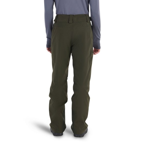 [This review was collected as part of a promotion.] I'm not a skier/snowboarder, bought these for a winter hiking in the Rocky Mountains and for the Sierra. They are lightly insulated, enough to be warm but not bulky. The material is soft, slightly flexible, not hard and "crispy". I like that they are quiet and easy to move around in. They are fairly slim-fitting, but there is an adjustable waistband. The only ding is the fact that Marmot doesn't make these with multiple inseam lengths: I wear a "short" inseam so I had them tailored.