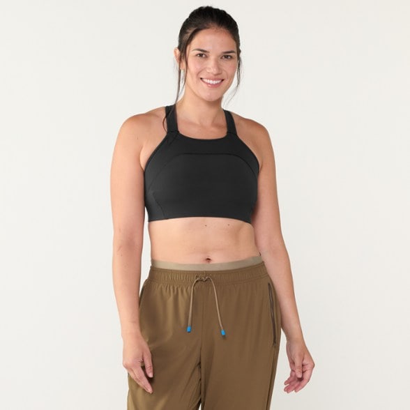 This Janji sports bra is supportive enough for your toughest runs. It features a signature Targeted Anti-Bounce band for high-impact support. And it has a back phone pocket for convenient storage.