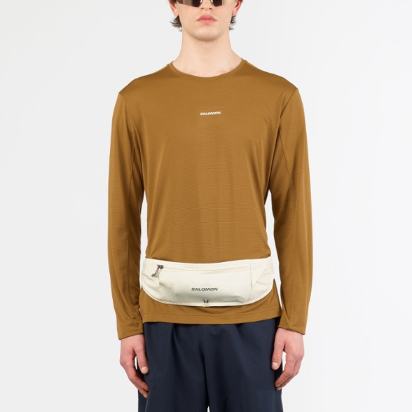 This belt is affordable (surprisingly, for Salomon) and fits my XXL body, unlike other running belts. It get the job done but is generally less comfortable than other options and lacks features. It's basically one big pocket with small stretch pockets on the side. The small stretch pockets are small, they barely fit an ID or credit card. They did not fit any of my nutrition/snacks. Still, for the price, it's a good product.