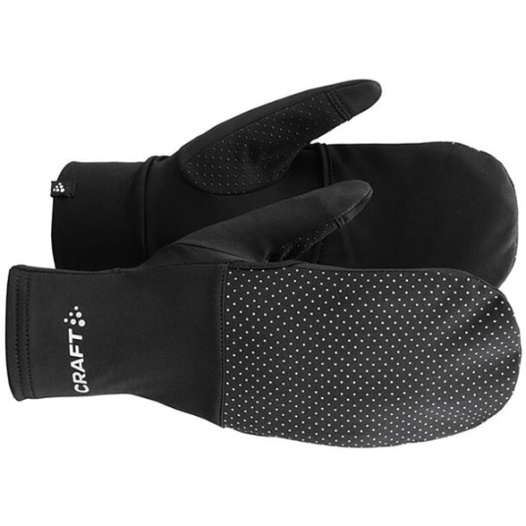 Stay warm and visible with these Craft hybrid gloves. They go from gloves to mittens to adapt to changing weather. The reflective print helps keep you visible when the sun's not up.