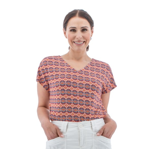 Looking for a short-sleeve shirt to add some pizzazz to your summer outfits without sacrificing comfort? The women's Aventura Spectra top fits the bill with soft, stretchy and moisture-wicking fabric.
