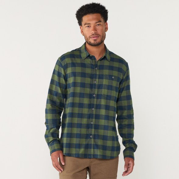 Enjoy seasonal warmth with this Stio flannel shirt. Crafted with double-brushed organic cotton and a hint of spandex, it moves with you. A vintage garment wash upgrades the softness even more.
