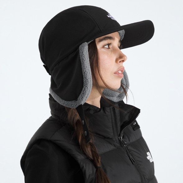 | Fabric | Body, brim and outer earflap: 100% recycled polyester with non-PFC durable water repellent (DWR) finish; lining, inner earflap and earflap binding: 100% recycled polyester high-pile fleece |