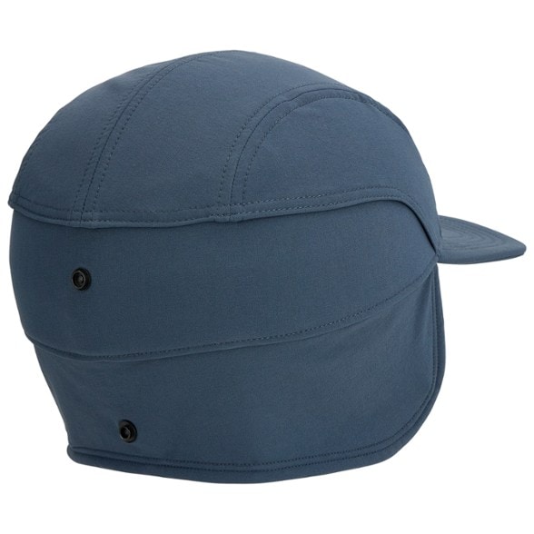 - Earflaps provide critical coverage in biting winds; cap can be worn with earflaps up or down