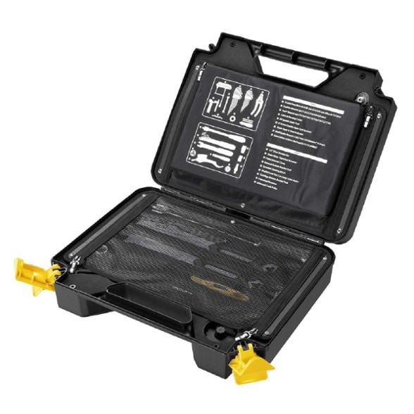 - Die-cut foam inserts and zippered mesh panels keep tools secure and organized