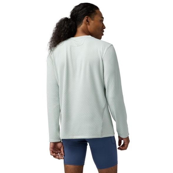 A lightweight, thermal layer, this Brooks long-sleeve is warm and breathable for cold runs. Odor-resistant fabric keeps you feeling fresh. It's semifitted for easy layering.