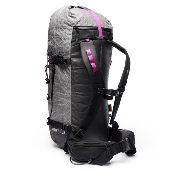 Tackle backcountry lines with this lightweight Black Diamond ski pack. It's built with a tough, lightweight fabric. It's slimmed down with a roll-top closure and has a quick-access avy pocket.