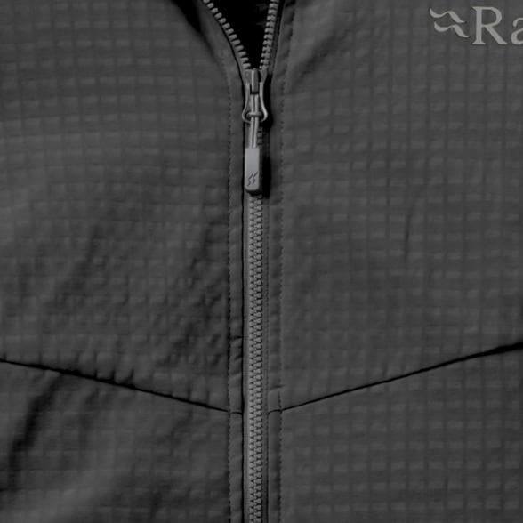 When temps drop and you're working hard, grab this Rab fleece hoodie. It's an adaptable mid layer built with breathable, durable Thermic™ Pro gridded fleece. And it's stretchy so you can move freely.