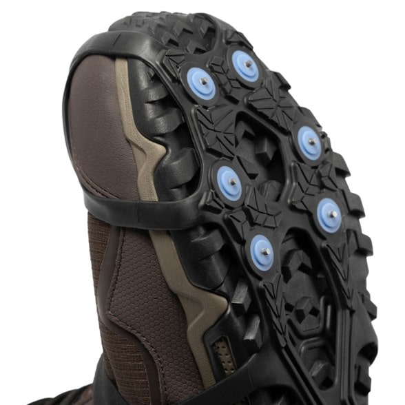 - 10 carbide-steel spikes deliver grip on snow and ice; the molded-in spikes offer long-term performance underfoot