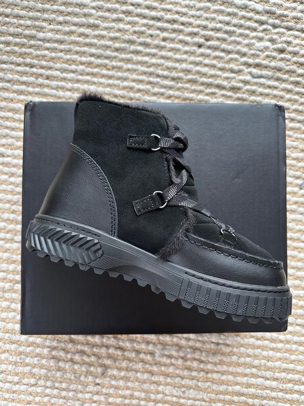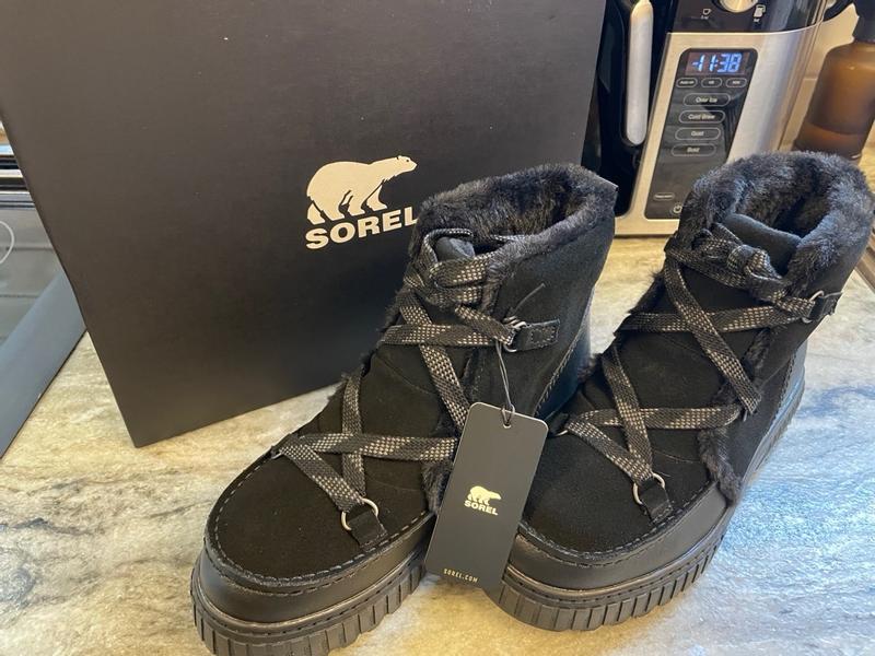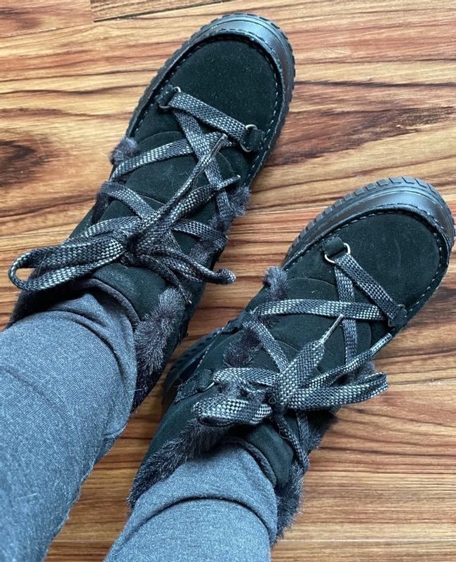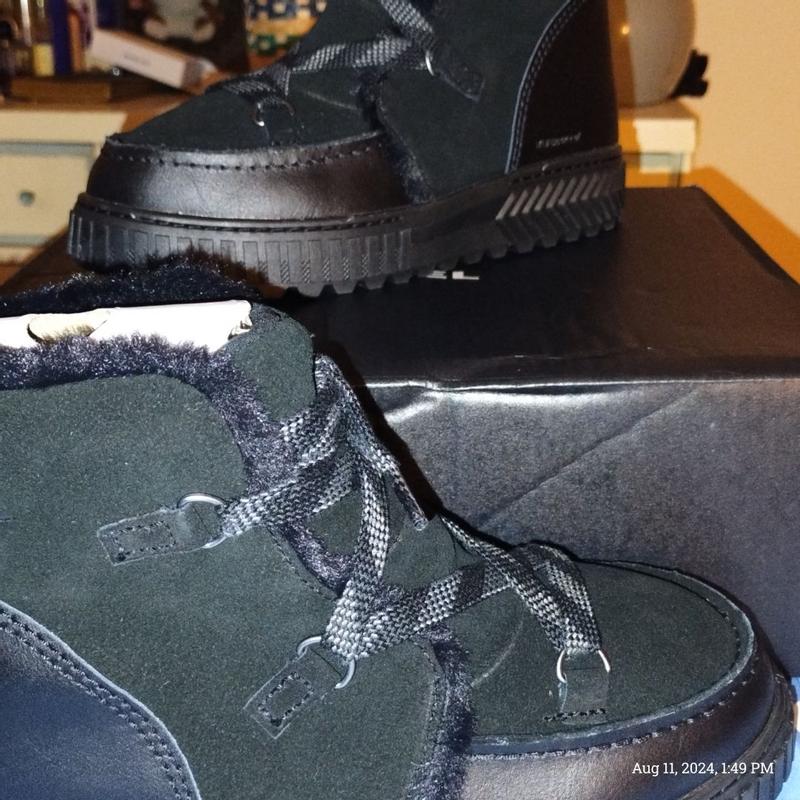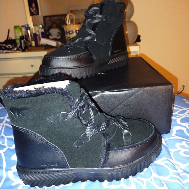 [This review was collected as part of a promotion.] Sorel Ona Ave. Waterproof Boots I received the Sorel Ona Ave. Waterproof Boots from #Sorel and #influenster in exchange for my honest and unbiased review. The first thing I would like to tell you is that I felt that they ran a bit small, because I got the size I would normally have gotten if I were to buy boots, and they were tight. I was able to get them on, but not to comfortably move around with them on. If they would have actually fit, they would have been a dream. (Yes, I made contact about this issue) Also, when I received the claim, there were only full sizes, so I picked what I would normally get in shoes that only have full sizes. 🤷🏼‍♀️ Besides that, I have to say that I found them to be made quite nicely. They feel very sturdy, even with how light they are. They have nice metal eye rings so you don't have to worry about them breaking while you are walking, hiking, or climbing. They have a good strong shoestring. They have a loop for pulling them on, which is awesome for getting them on quickly. They have a really nice soft inside, and the entrance to the boot is a faux fur.. The top ankle part, is not too low, but not so high that it goes up on your calf, so that it is nice and comfortable and you don't have to feel it pushing in on the back of your leg during the day when walking, or hiking. They do look nice with jeans. I like the fact that they are all black, so they will go with most any color you try to wear that day. They felt very warm, so I don't believe that there would be any problem with your feet getting cold. I love the fact that they are waterproof, and insulated because I like to go hiking, and sometimes you have to cross little streams, which are very cold in the mountains. These boots have really nice tread on them, and from the feel of the soles they feel like they would last for a good long time, especially with how well the boots are made. The inner sole is a soft but strong foam that reminds me of a heavy memory foam. I would definitely recommend these boots, because I would love to be able to actually wear them around myself because they are a fantastically made boot with a dreamy interior, but alas, I will not be able to. At some point I will try to buy my own pair that will fit me.