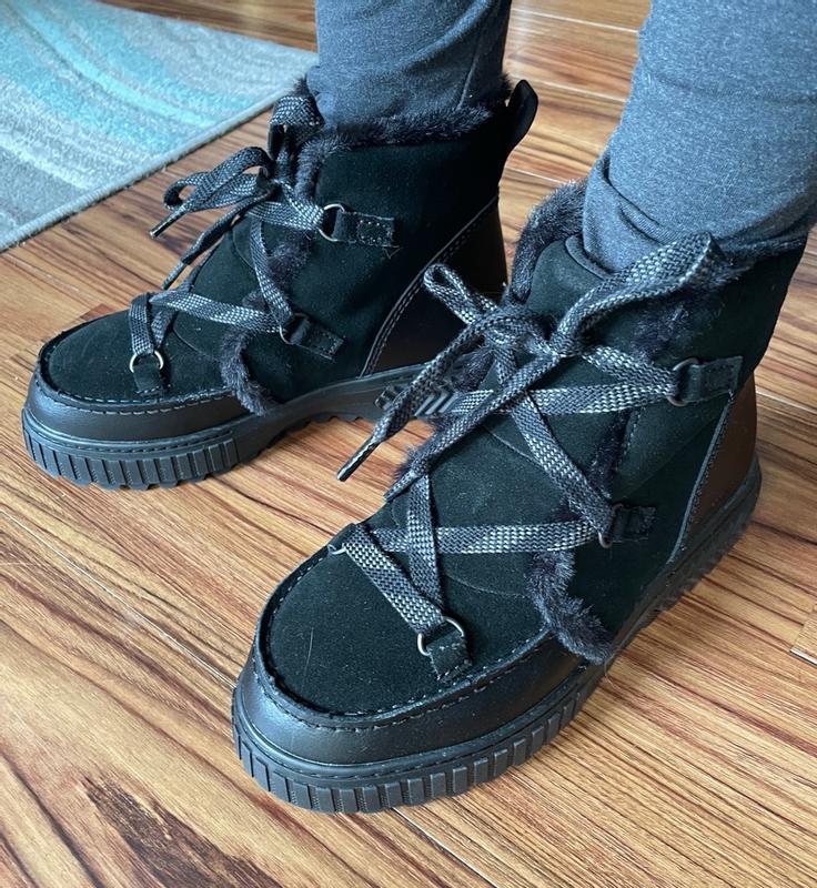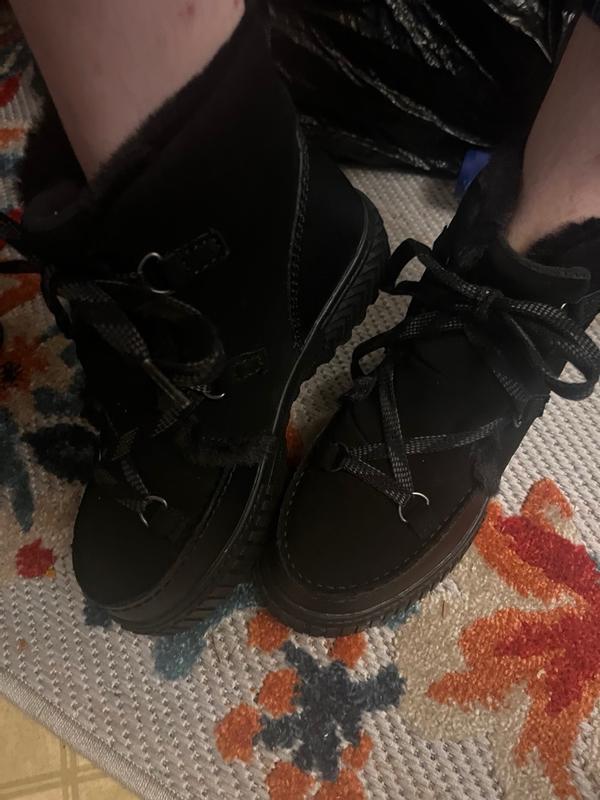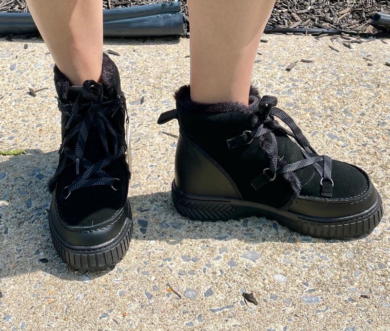 [This review was collected as part of a promotion.] I just want to start by saying these bad boys will give you some HEIGHT. The sole is about 1-1.5 inches high which I was not expecting but consider a plus. I ordered a 7 because I didn’t realize they had half sizes and I typically size down for that. Turns out they do so I was nervous about them being too small, I typically wear 7.5 sometimes 8 depending on the shoe. These actually fit really well! I don’t think I’ll be able to wear thick socks with them unless they stretch out a little but they’re still super comfy so I would say they could run big depending on how you want them to fit. The laces are nice and seem durable, they’re actually cute and will be easy to wear with normal outfits and not look like an obvious snow boot. They seem like they’re really good quality so far but I do wonder how they’ll hold up after a winter or two. Also! Even though they tell you you don’t have to put waterproof spray on them I would definitely still recommend it!