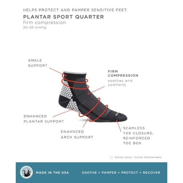 Do you run? Do you have high arches or flat feet? Do you sit or stand for hours? These plantar relief socks may be for you. Firm compression supports and stabilizes inflammation of the plantar fascia.
