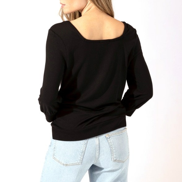 Made from soft Feather fleece and designed with an elegant square neckline, the women's Threads 4 Thought Rosalinda Cozy 3/4-Sleeve top takes everyday comfort and elevates it to the next level.