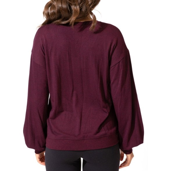 Made from supersoft fleece for a cozy feel, the women's Threads 4 Thought Abbey Feather Fleece pullover has puff sleeves and a V-neck for added style points.