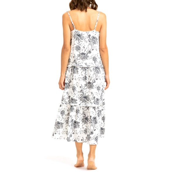 Made from 100% organic cotton, the Threads 4 Thought Gina Floral Gauze Maxi dress is soft but not sheer. The flowy style has an elegant tiered design and adjustable straps.