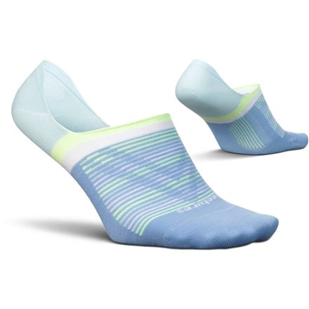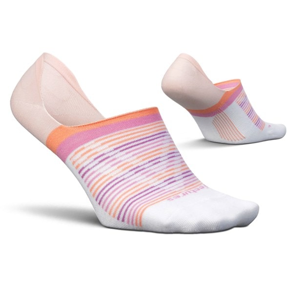 Feetures invisible socks are the first/only style of “hiding” socks that successfully stay on my heels for the full day of wear, even after several months of washes. All other brands of the same style slip eventually. I have a naturally high arch and instep which means my “relaxed” foot makes those kinds of socks naturally inclined to slipping off. I have loved feetures for several years now and I love that the invisible style stays on my heel and also still has the classic feetures supportive comfort on top of all that!