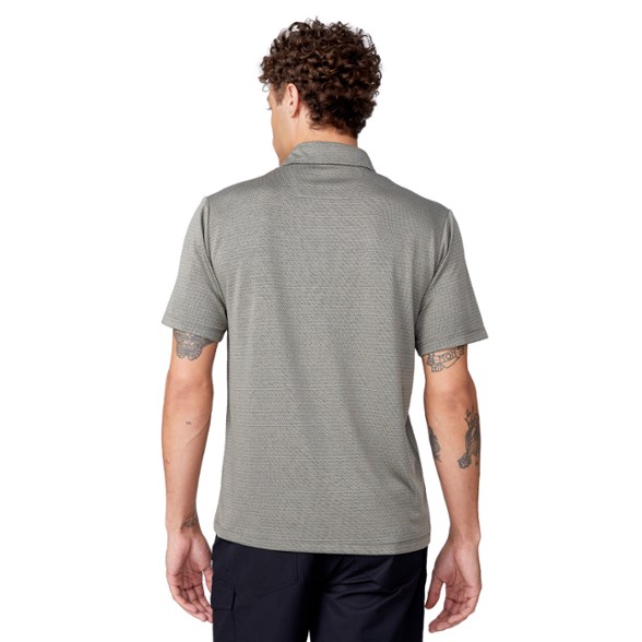 Go beyond basic with the breathable and moisture-wicking fabric of the Free Country Tech Jacquard Short-Sleeve Polo shirt. It maximizes your movement while regulating your body temp.