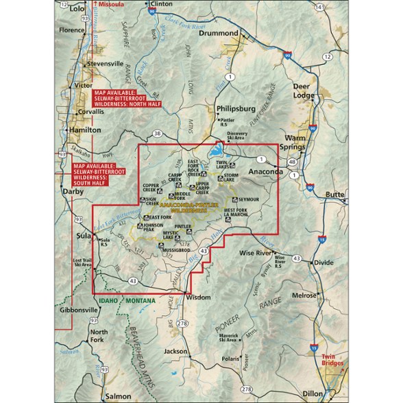 Explore the Montana Anaconda-Pintler Wilderness, East Fork Bitterroot Area, Anaconda Range and Northern Big Hole Valley with the 3rd edition of the Cairn Cartographics Anaconda-Pintler Wilderness Map.