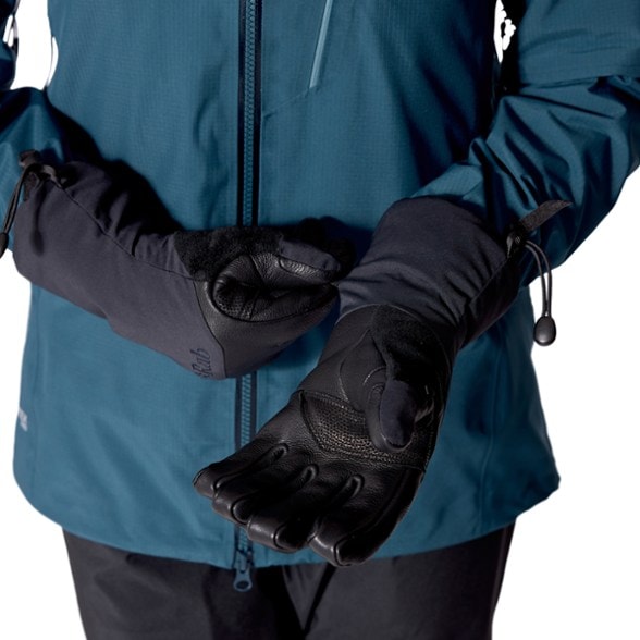 Made for prolonged mountain use, these Rab gloves are warm and waterproof. PrimaLoft® Gold insulation keeps out extreme cold. Grip control palms give you dexterity for skiing or belaying.