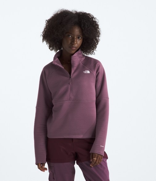 Work hard even in the cold in the women's The North Face DotKnit Thermal Quarter-Zip pullover. It helps regulates body temp with an innovative insulating fabric and moves moisture with its texture.